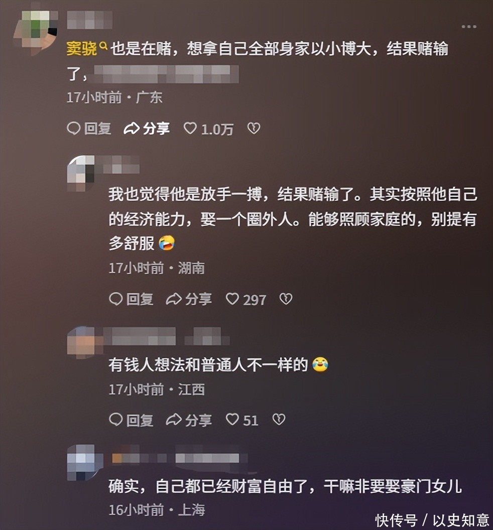有人同情窦骁,认为他为爱付出全部却遭冷遇;也有人评论称,窦骁就是在赌,想拿自己的全部身家以小博大,但没想到赌输了。