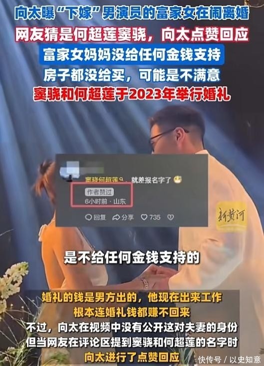 当有网友在评论区提到“窦骁何超莲”时,向太亲自点赞了这些评论,随后又取消,这一举动被外界视为默认当事人身份。